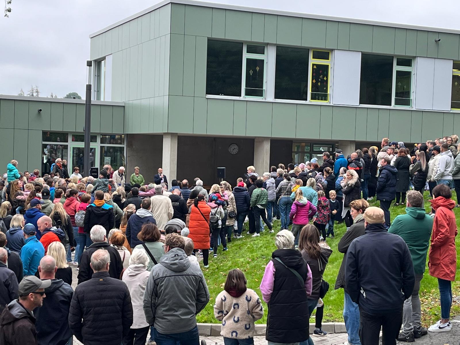 Im Anschluss segnete Dechant Daniel Jardzejewski das neue Haus. Unser ehemaliger Bürgermeister Christian Carl hielt eine Rede, erinnerte an die Bedeutung des Projekts im Hinblick auf die ab 2026 geltenden gesetzlichen Vorgaben zur Ganztagsbetreuung und überreichte der Schule ein Geschenk.