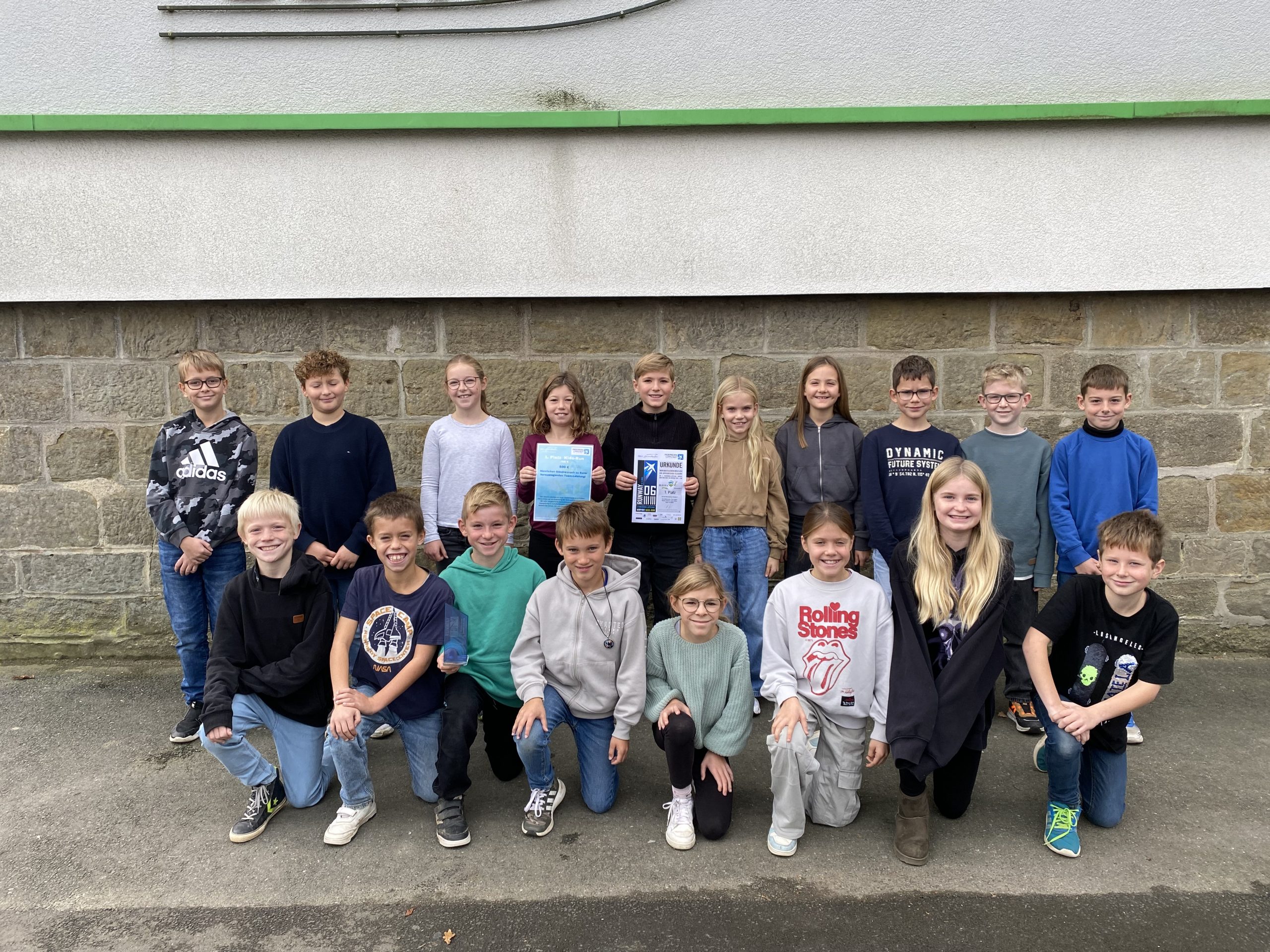 • Am 02.11.2025 fand am Flughafen Paderborn Lippstadt der diesjährige Paderborner Airport Run statt. Bei dem Schüler*innenlauf gingen auch einige Kinder aus unseren 3. und 4. Klassen an den Start. Die Strecke mit einer Länge von 1,7 Kilometer führte dabei als ein ganz besonderes Highlight auch über das Rollfeld des Flughafens. Für alle Kinder war es ein beeindruckendes Erlebnis, einmal dort zu laufen, wo sonst Flugzeuge starten und landen. Besonders erfolgreich war unser Team aus dem 4. Schuljahr: Im Teamwettbewerb erreichten fünf Kinder den 1. Platz! Mit ihrer tollen Leistung sicherten sie sich nicht nur den Sieg, sondern gewannen außerdem 500 Euro für die Jahrgangskasse.