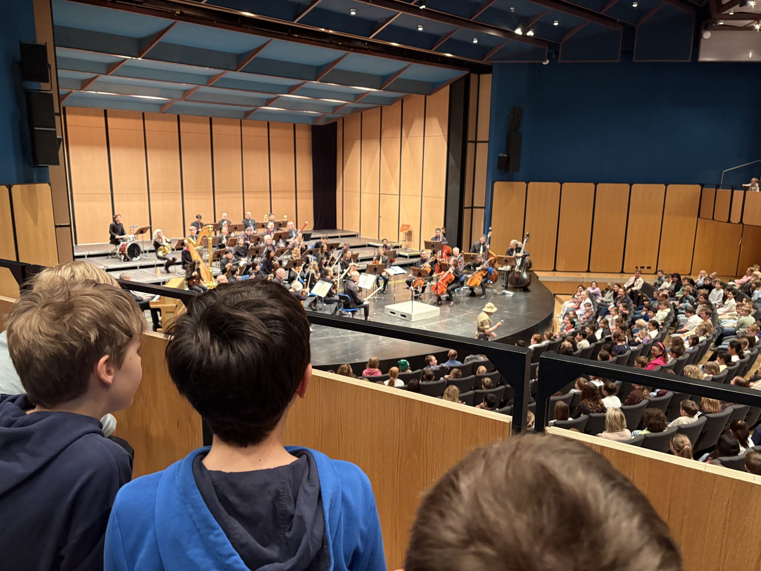 Dabei drehte sich vieles um Vogelstimmen und die Frage, wie solche Klänge mit Instrumenten nachgeahmt werden können.In der Paderhalle erlebten die Schülerinnen und Schüler ein Orchester live auf der Bühne. Besonders schön war, dass die Kinder auch selbst aktiv werden konnten: Sie durften mitsingen und sich zur Musik bewegen. So waren alle mit viel Freude dabei und konnten die Musik auf ganz unterschiedliche Weise erleben.